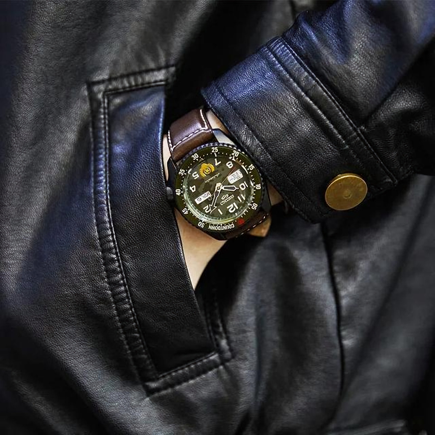 ساعت مچی مردانه سیکو SEIKO با طراحی اسپرت بند چرم قهوه ای با قاب گرد دو رنگ و صفحه سبز ارتشی با موتور اتوماتیک ژاپنی و قابلیت تقویم روز و ماه با انرژی مکانیکی و مقاوم در برابر آب تا عمق 100 متراین ساعت مچی مردانه به همراه دو سال گارانتی بین المللی ارائه میگردد