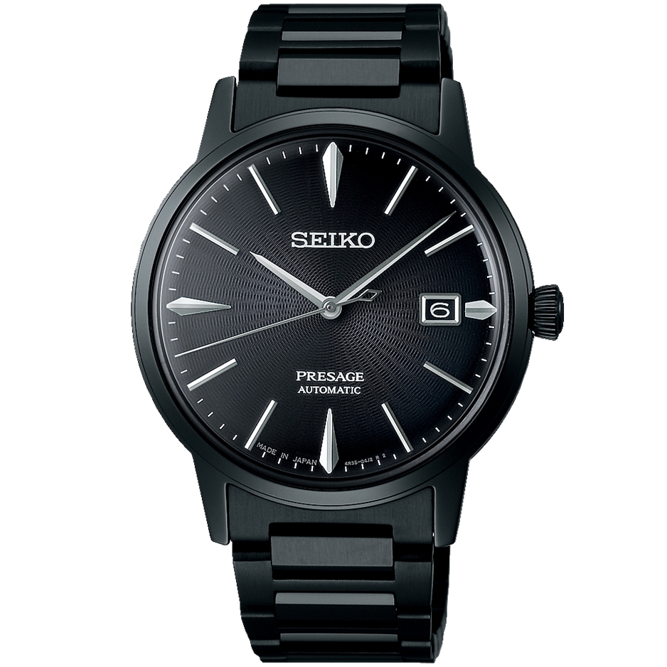ساعت مچی مردانه سیکو seiko با طراحی روزانه بند فلزی مشکی و قاب گرد و صفحه مشکی و قابلیت داشتن تقویم و موتور اتوماتیک ژاپنی با انرژی مکانیکی مقاومت در برابر اب تا عمق 50 متر به همراه دو سال گارانتی بین المللی