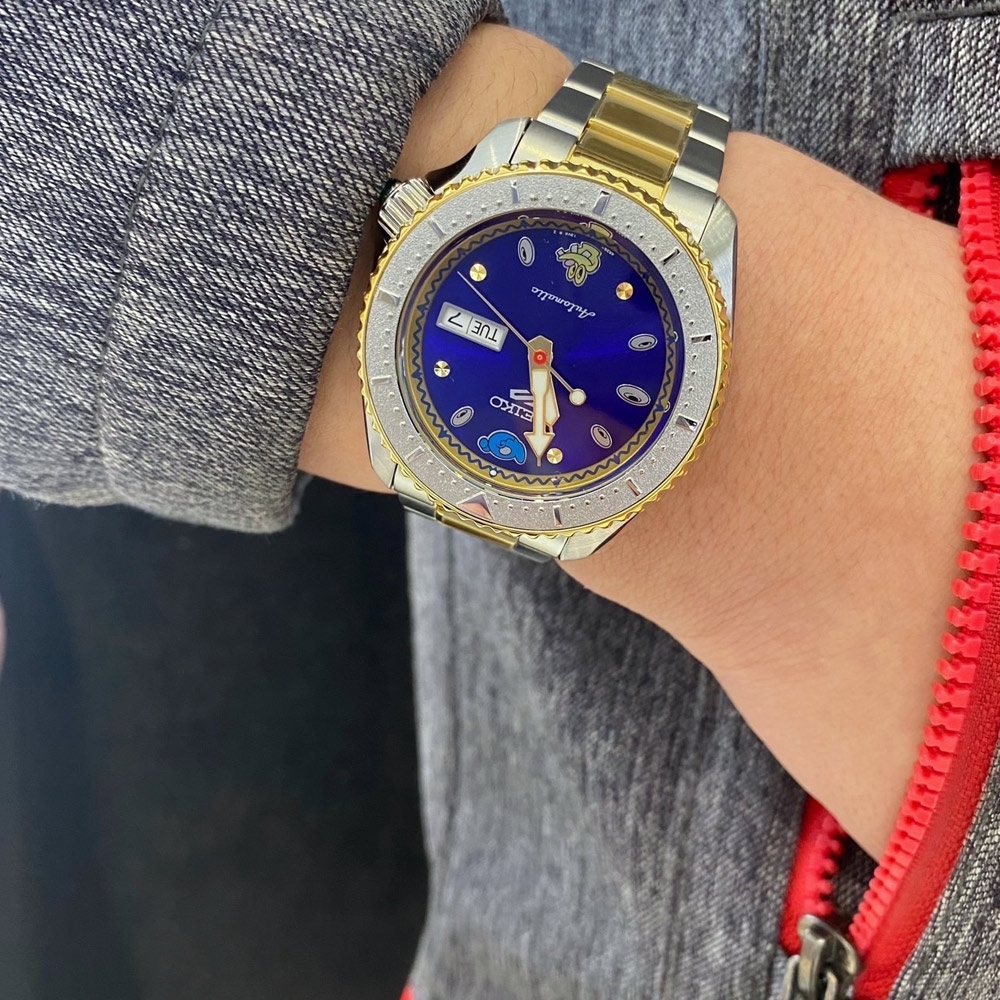 ساعت مچی مردانه سیکو SEIKO با طراحی روزانه بند استیل طلایی با قاب طلایی استیل و صفحه گرد سرمه ای و موتور اتوماتیک ژاپنی با انرژی مکانیکی و قابلیت داشتن تقویم , شب نما , روزهای هفته و مقاومت در برابر آب تا عمق 100 متر به همراه دو سال گارانتی بین المللی