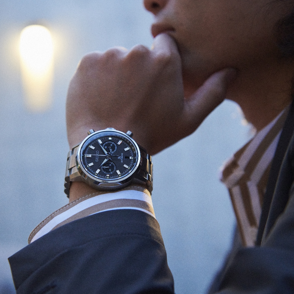 ساعت مچی مردانه سیکوseiko با طراحی روزانه بند استیل وقاب گرد استیل و صفحه طوسی با شیشه آنتی رفلکس و قابلیت داشتن کرنوگراف , تقویم , شب نما , زه تاچی متر و موتور اتوماتیک ژاپنی با انرژی مکانیکی مقاومت در برابر اب تا عمق 100 متر به همراه دو سال گارانتی بین المللی